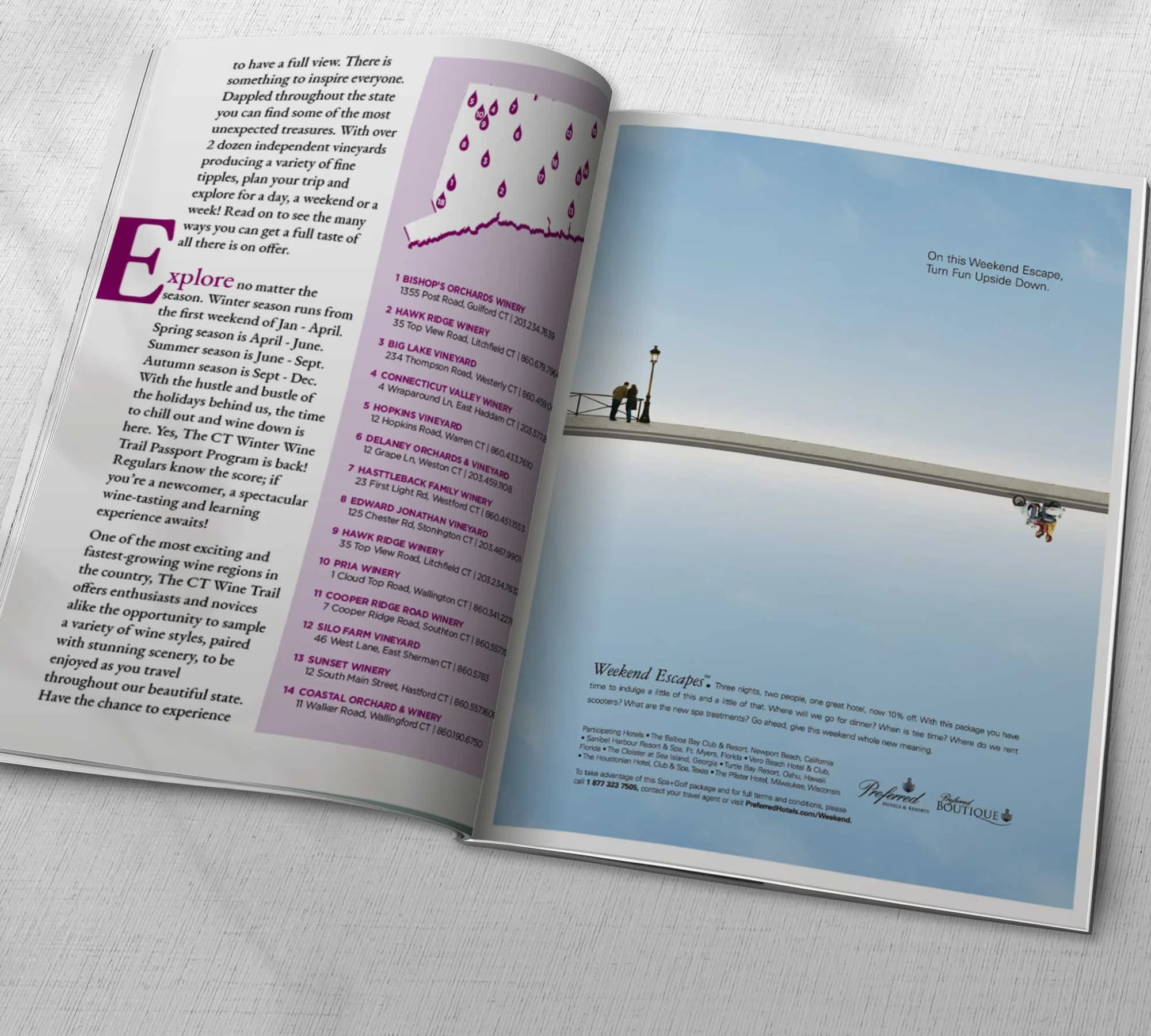 Getting more out of a short luxury break was the concept for these split image ads for the Preferred Boutique portfolio. Simple but strong images pull the viewer in with a sense of quietness and calmness.